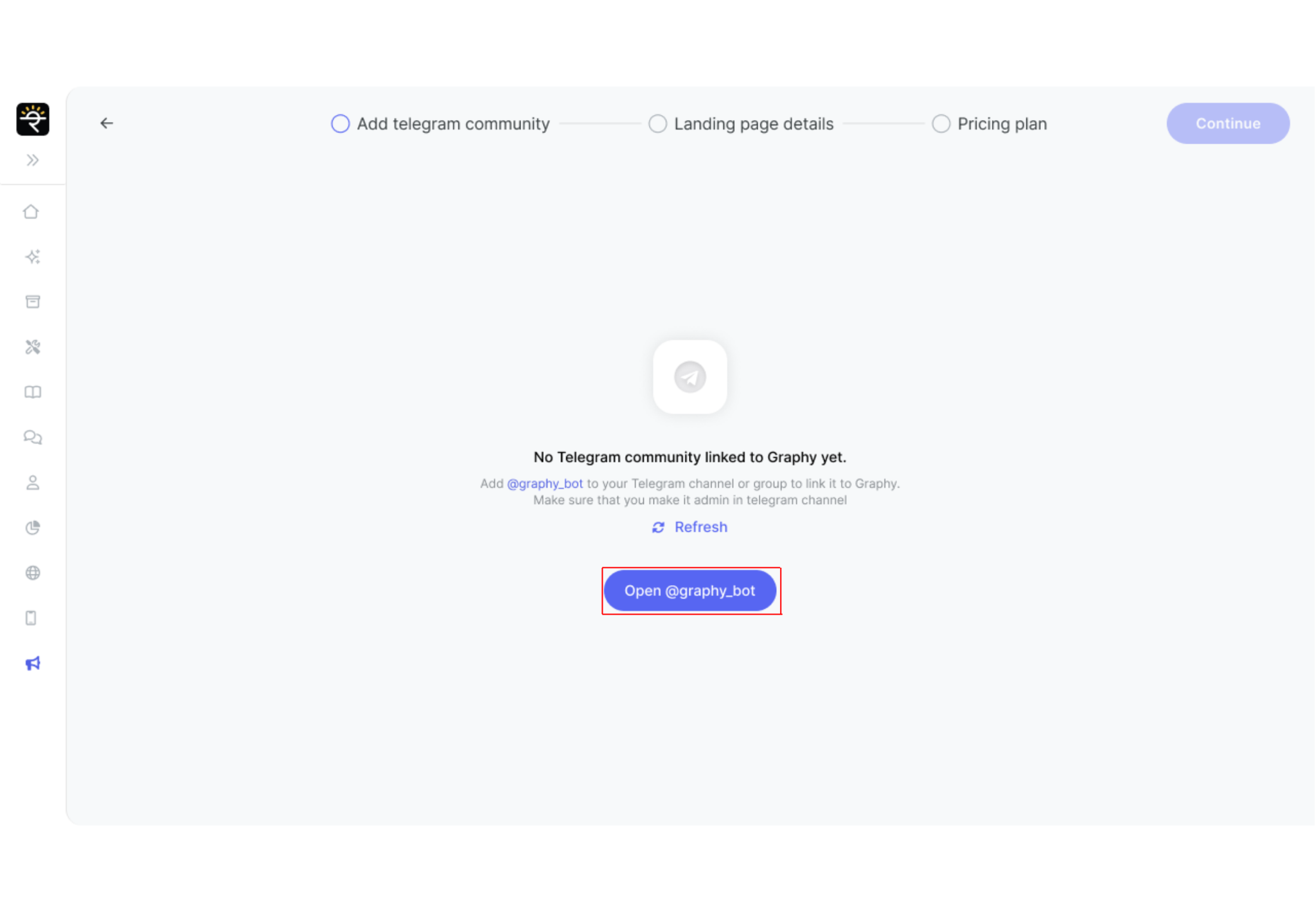 After adding @graphy_bot, click on the "Refresh" button or "Open @graphy_bot" to proceed.