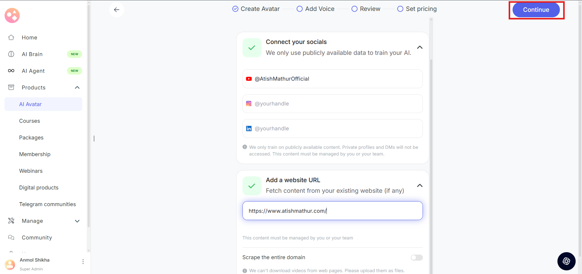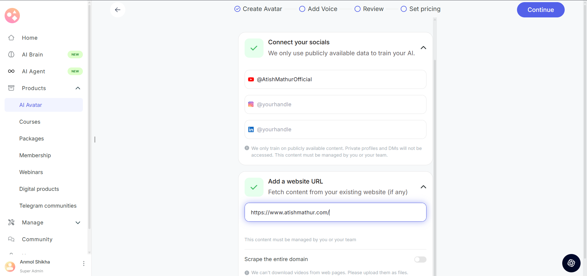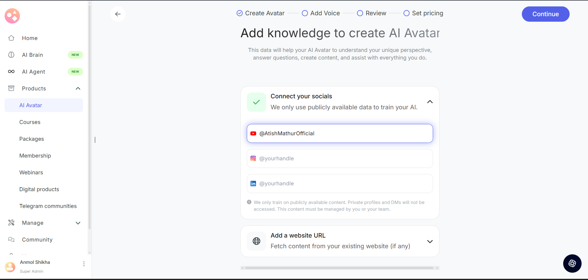 Step 3: Add your content to train your Avatar's brain. Your AI needs to learn from your content to sound like you.