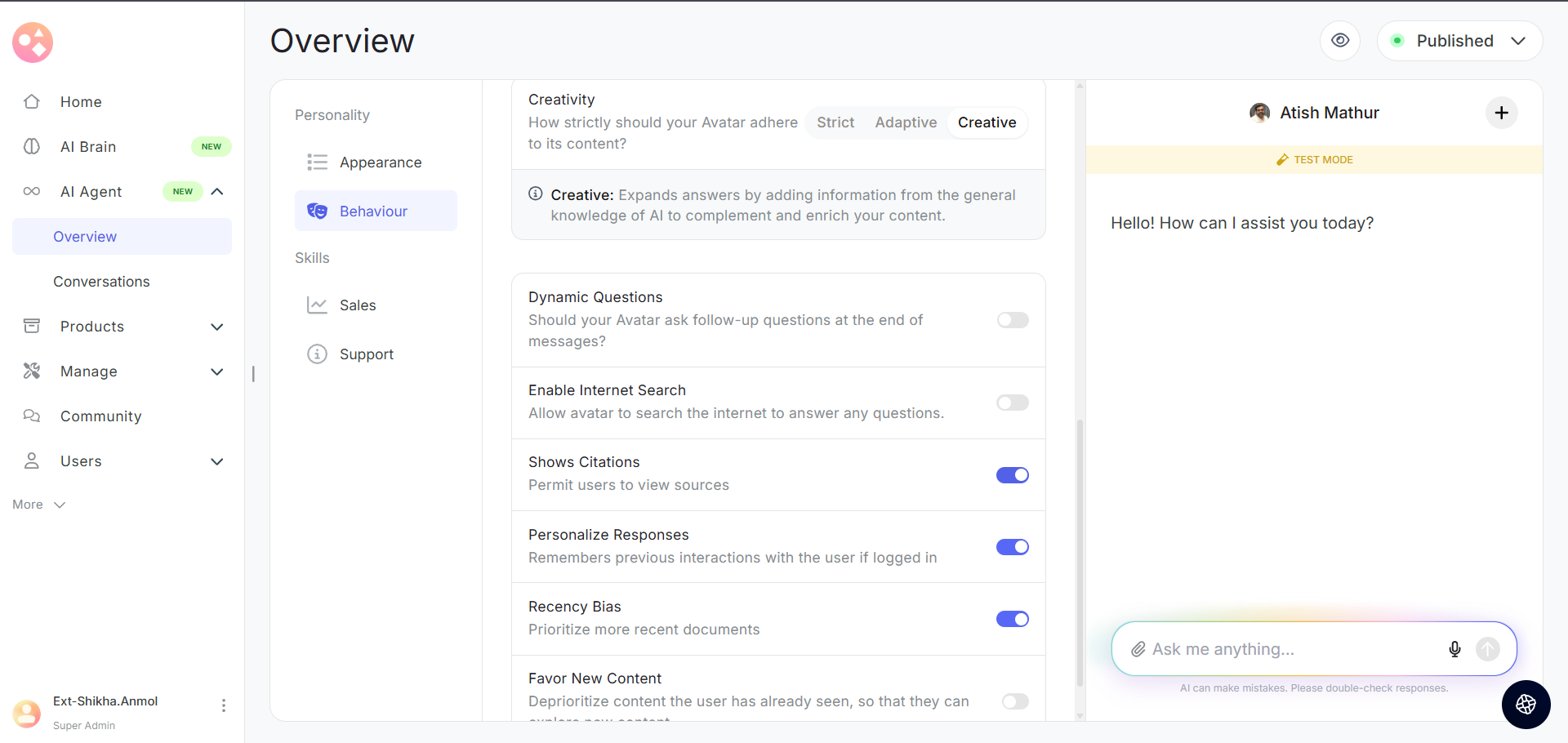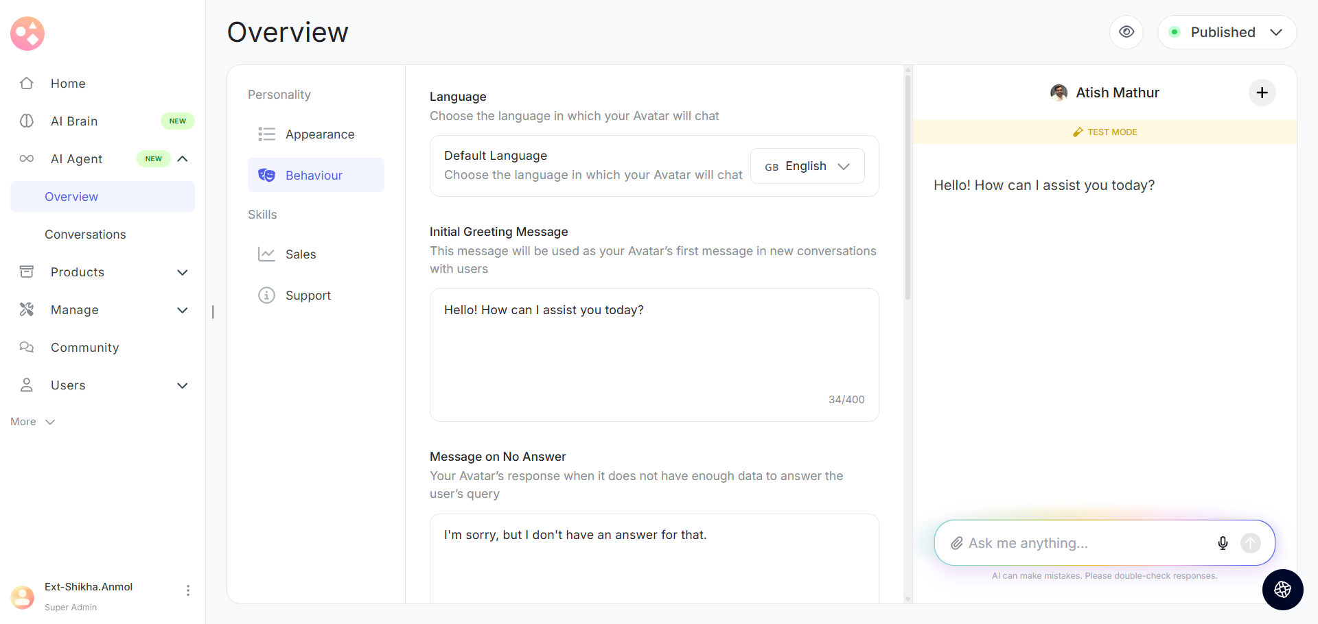Your AI Agent is more than just a chatbot it’s the voice of your brand for learners . The way it responds, and handles conversations directly shapes the experience people have with you. That’s why configuring its behaviour is important.