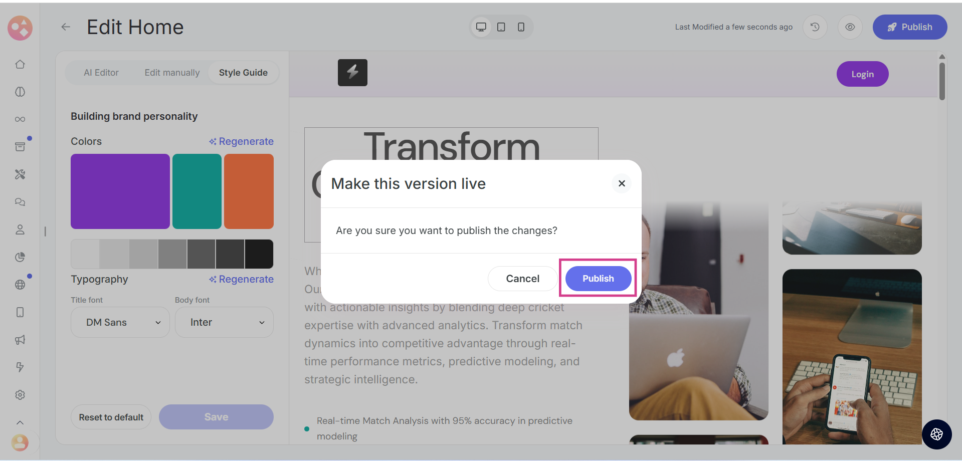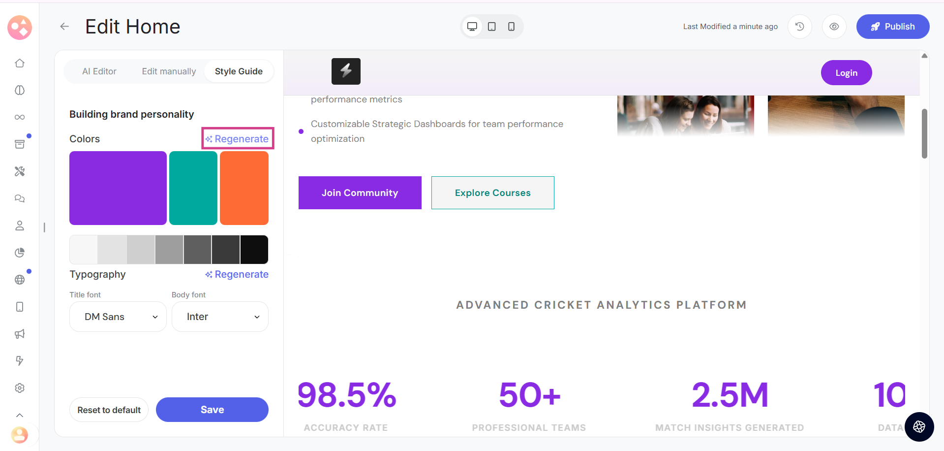 Simply click on the regenerate option and let the system generate new color combinations that match your brand and content.